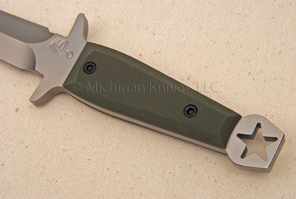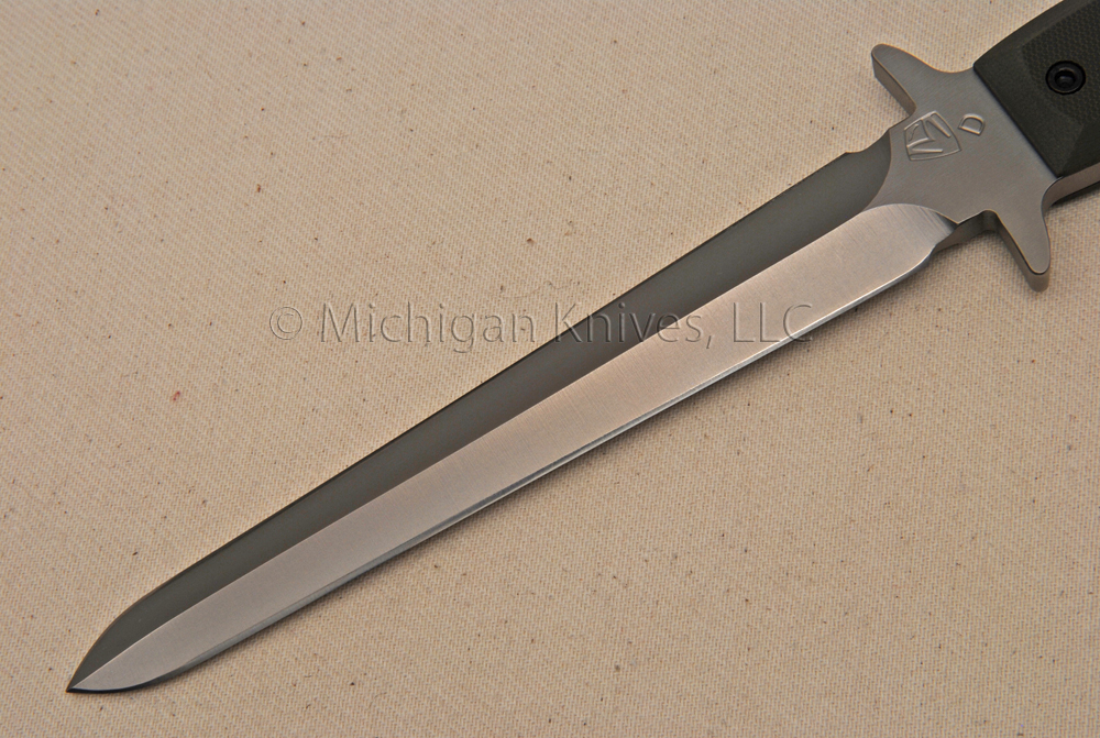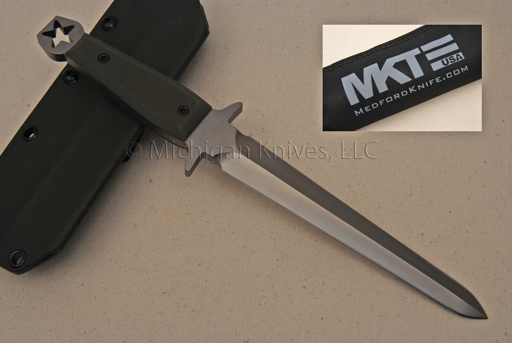 The FS Dagger is made in the USA by Medford Knives. Another precision work tool from Medford that feels rock solid in the hand. Survival / combat knife designed to support our Military. Features a very impressive 5-5/8" double-edge blade of D2 Tool Steel (0.26" stock) with NP3 (Electroless Nickel) finish and a Black G10 handle. 10-1/2" OAL. Full-exposed tang is extended to form glass breaker butt tip. Extremely impressive, well-made work tool. Includes black Nylon zippered stage case. Manufacturer minimum advertised price shown.